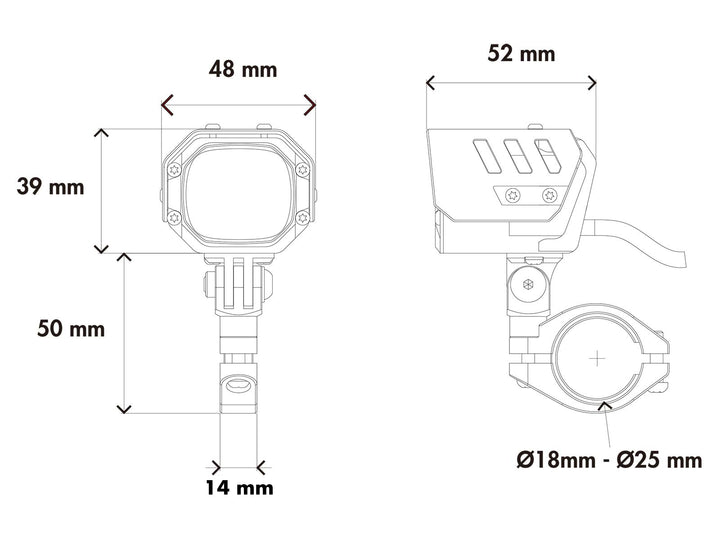 - Complete headlight set; Incl. 2x LED additional headlights, 1x switch, 1x cable set, 2x clamp incl. reducing sleeves, 1x instructions, 1x tool set