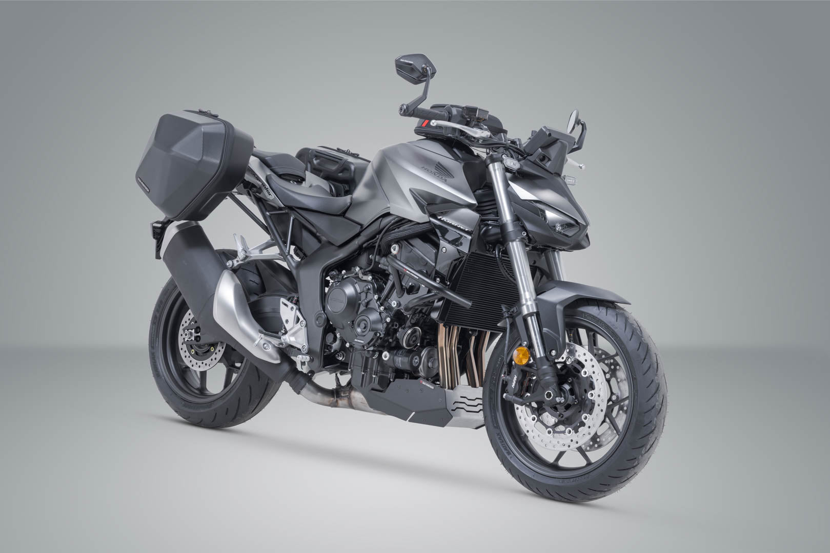With this combination of SLC side carriers and the URBAN ABS side cases, SW-MOTECH makes the Honda CB1000 Hornet ready for longer trips with more luggage.