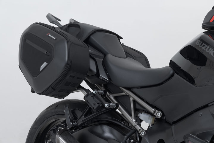 The high version of the PRO BLAZE saddlebags was specially developed for motorcycles with a high-standing exhaust. Due to the raised position, the pockets are not affected by the heat radiation from the exhaust. SW-MOTECH has manufactured this bag set with matching support arms for the Suzuki GSX-S 1000 GT.