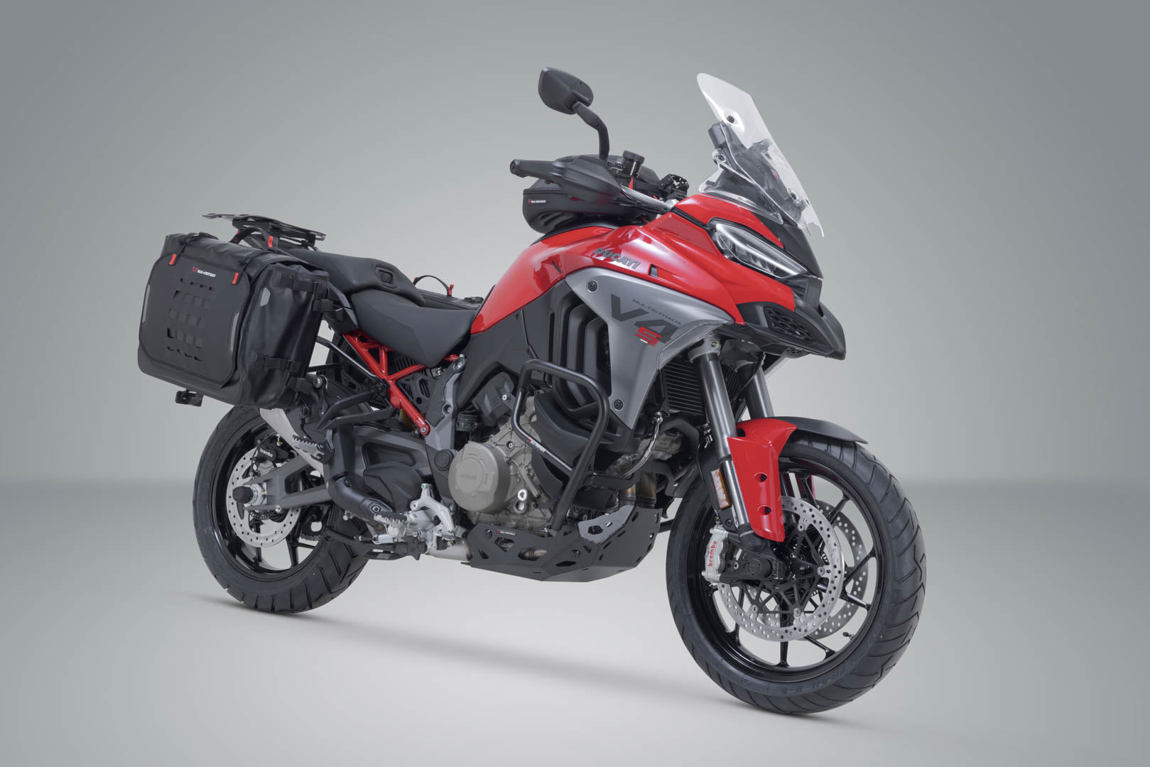 SW-MOTECH has created this combination of PRO side carriers and SysBag WP L bags to get the Ducati Multistrada V 4 ready for the next motorcycle adventure. The resilient, detachable carriers give the waterproof offroad bags optimal support over any terrain.