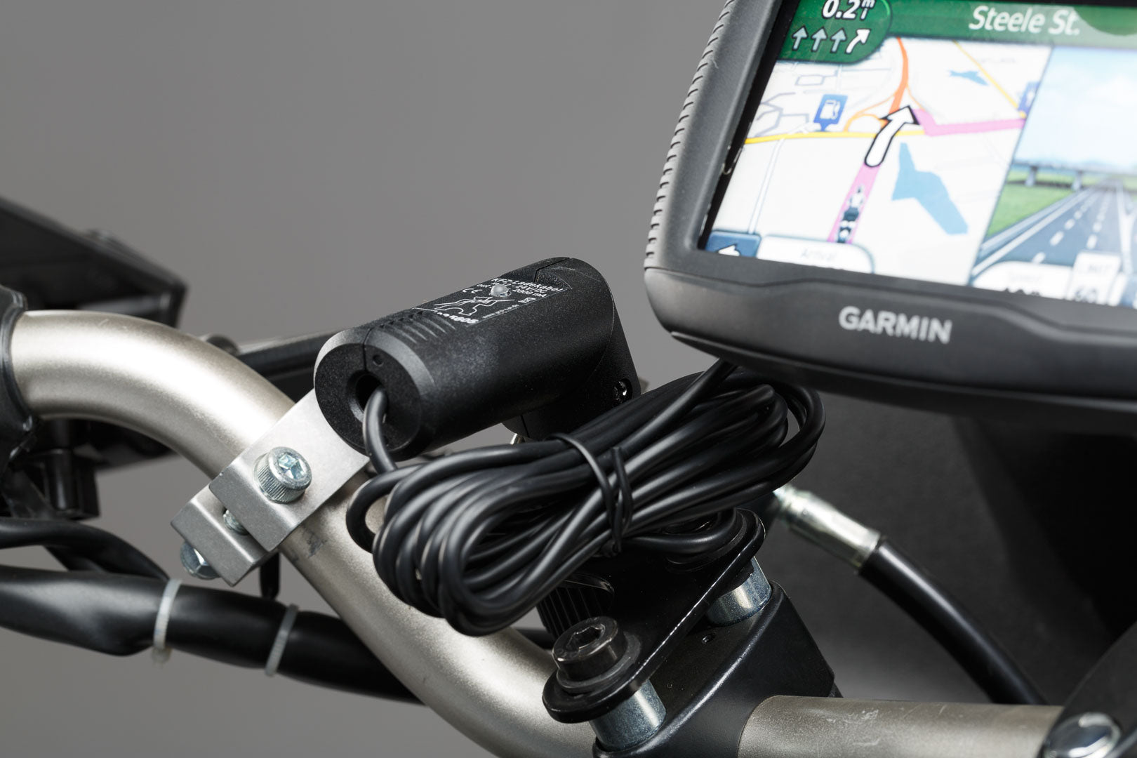 Mini USB charging cable for operating and charging popular GPS devices, digital cameras, smartphones, tablets and other electronic devices. With universal safety plug for use with vehicle power socket or cigarette lighter, cable length 180 cm, for 12 V operating voltage, power output of up to 2,000 mA.