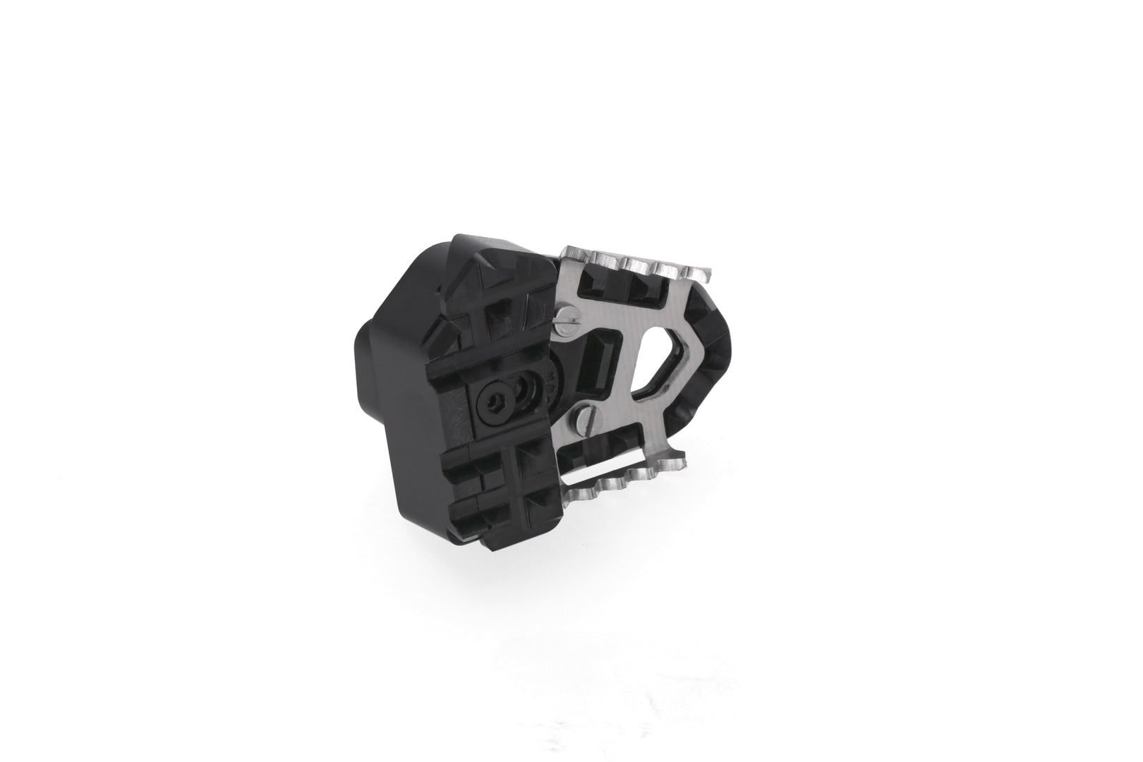 When off-roading, you often alternate between seated and standing positions. When standing, the angle of your knee changes, so your foot cannot put as much pressure on the smaller pedal. Thanks to the raised contact surface, your foot is angled more sharply, so it can reach and control the brake arm more easily, even when standing. There are two height settings.