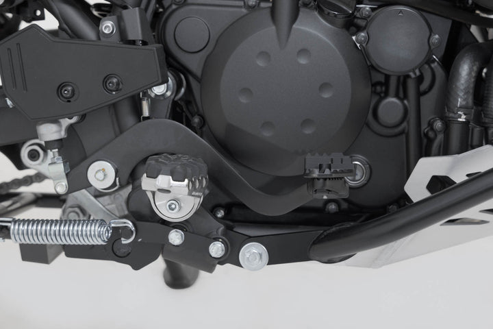 SW-MOTECH manufactures this foot brake lever extension from milled aluminum to fit the original foot brake lever of the Kawasaki KLR 650.