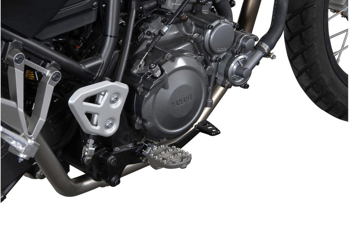 Our reasonably priced ION footrest kits allow the footrest to be mounted at its original height or lowered by 15 mm. Extremely durable and built to last, these stainless-steel footrests provide plenty of extra grip and are recommended for adventure, offroad and urban motorcycles. Hinges made from high-strength aluminum alloy ensure that the footrest can fold out of the way if the bike tips over. The removable rubber top surface reduces vibration, and the profile gives you a firm grip during offroad riding. To mount the bike-specific hinge adapter to the footrest sockets, the original attachments (springs, bolts, etc.) are used.