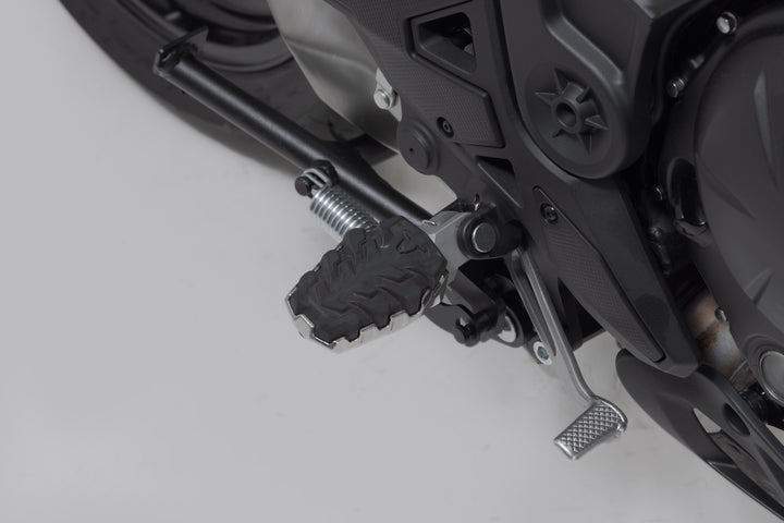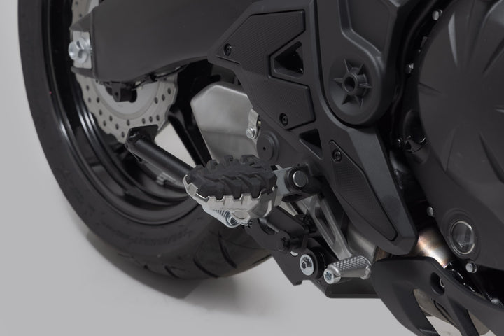 Is your original footrest impossible to position comfortably? Then the EVO footrest kit from SW-MOTECH is the perfect solution for you. This sophisticated system, consisting of rotating elements with firmly interlocking teeth, gives you 36 options for positioning. The position of the footrest can be adjusted so that it's lower or moved forwards or backwards as well as adjusted in terms of its angle to suit your individual needs. The bike-specific joint adapters are simply mounted on to the original parts of the footrest holder. We'll show you how this works in the mounting instructions.