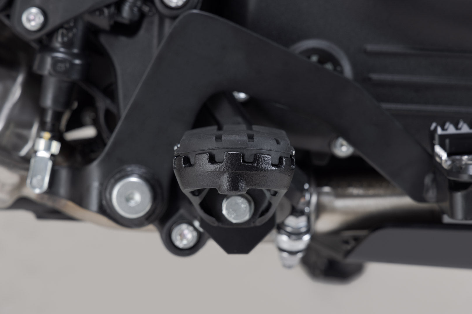 Our reasonably priced ION footrest kits allow the footrest to be mounted at its original height or lowered by 15 mm. Extremely durable and built to last, these stainless-steel footrests provide plenty of extra grip and are recommended for adventure, offroad and urban motorcycles. Hinges made from high-strength aluminum alloy ensure that the footrest can fold out of the way if the bike tips over. The removable rubber top surface reduces vibration, and the profile gives you a firm grip during offroad riding. To mount the bike-specific hinge adapter to the footrest sockets, the original attachments (springs, bolts, etc.) are used.