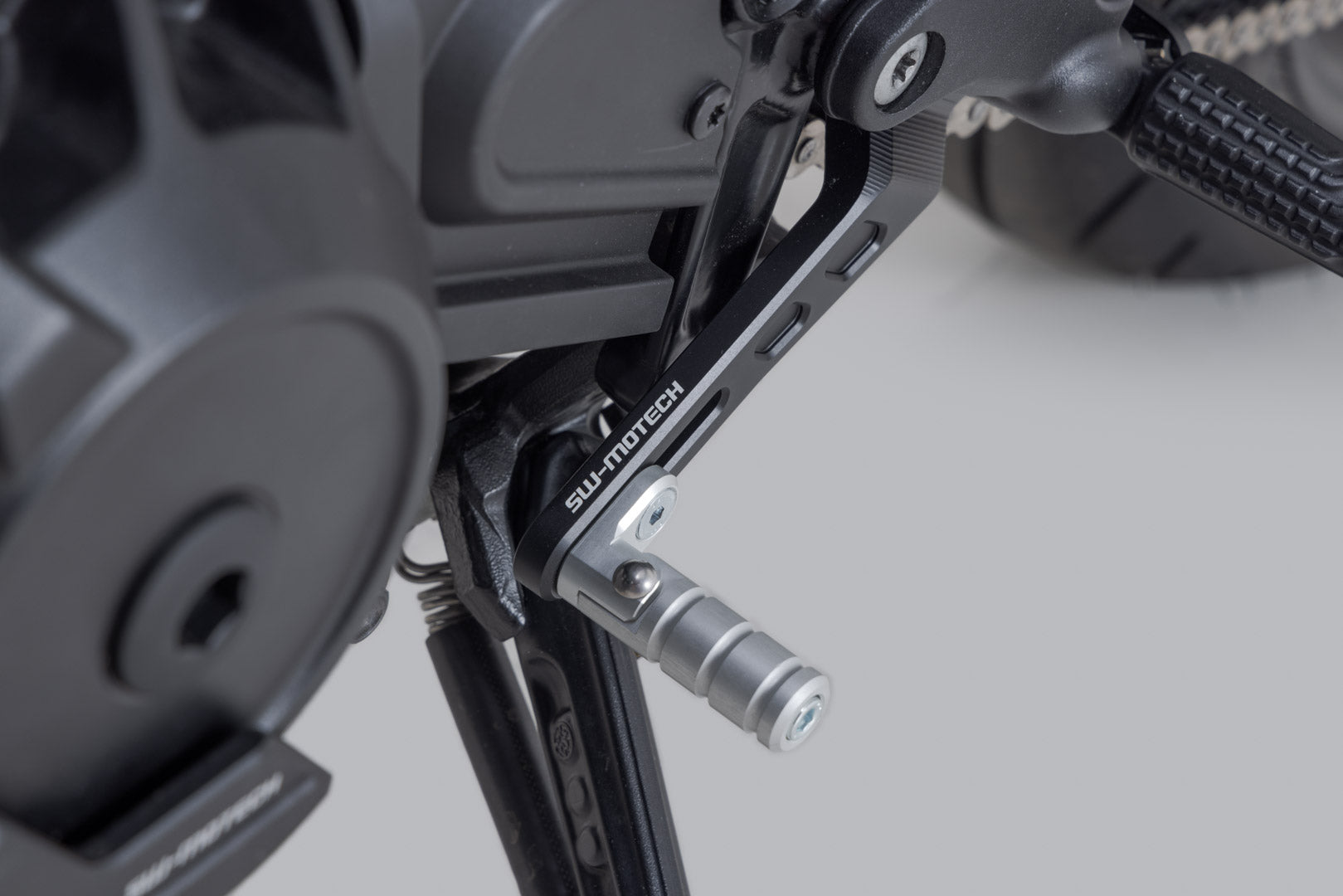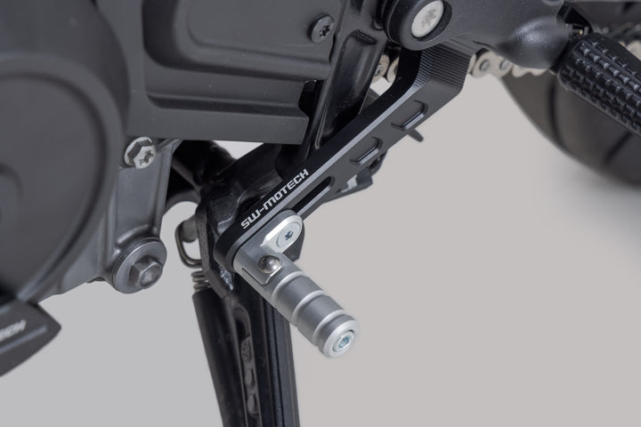 - Adjustable range of distance between tread and switching shaft on SW-MOTECH gear lever: 16.6 mm backwards and 16.8 mm forwards