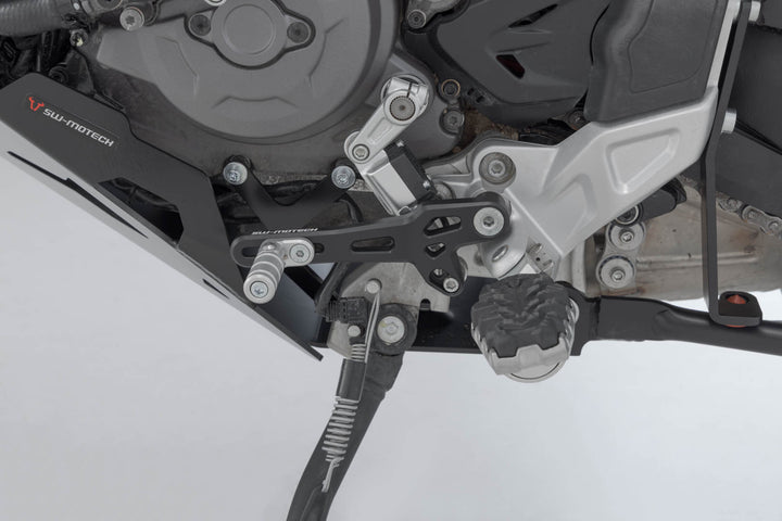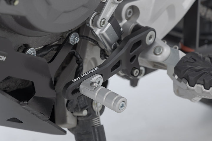 - Adjustable range of distance between tread and switching shaft on SW-MOTECH gear lever: 16.6 mm backwards and 16.8 mm forwards