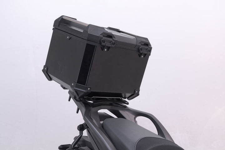 The TRAX ADV top case system consists of a robust black top case and the matching ADVENTURE-RACK for the Honda NT1100.