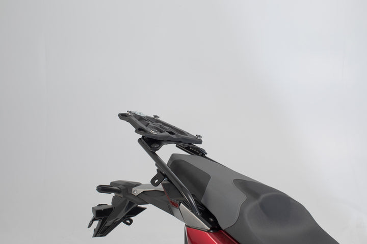 The TRAX ADV top case system consists of a robust black top case and a matching STREET-RACK for the Honda X-ADV.