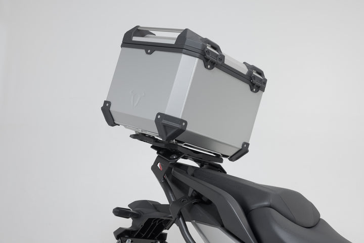 The TRAX ADV top case system consists of a sturdy silver top case and the matching STREET-RACK for the Honda NC 750 X.