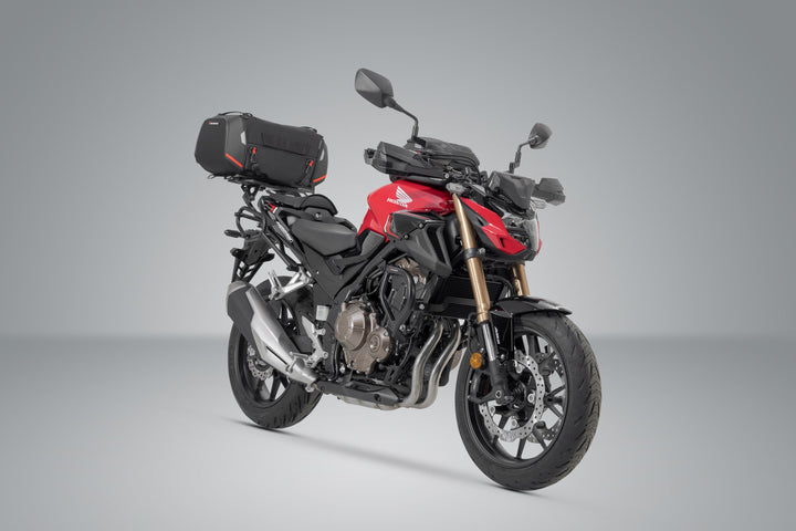 We have put together this combination of tail bag and luggage rack specifically to fit Honda bikes The bike-specific STREET-RACK with extension offers an ideal large contact surface for the PRO Rackpack tail bag.