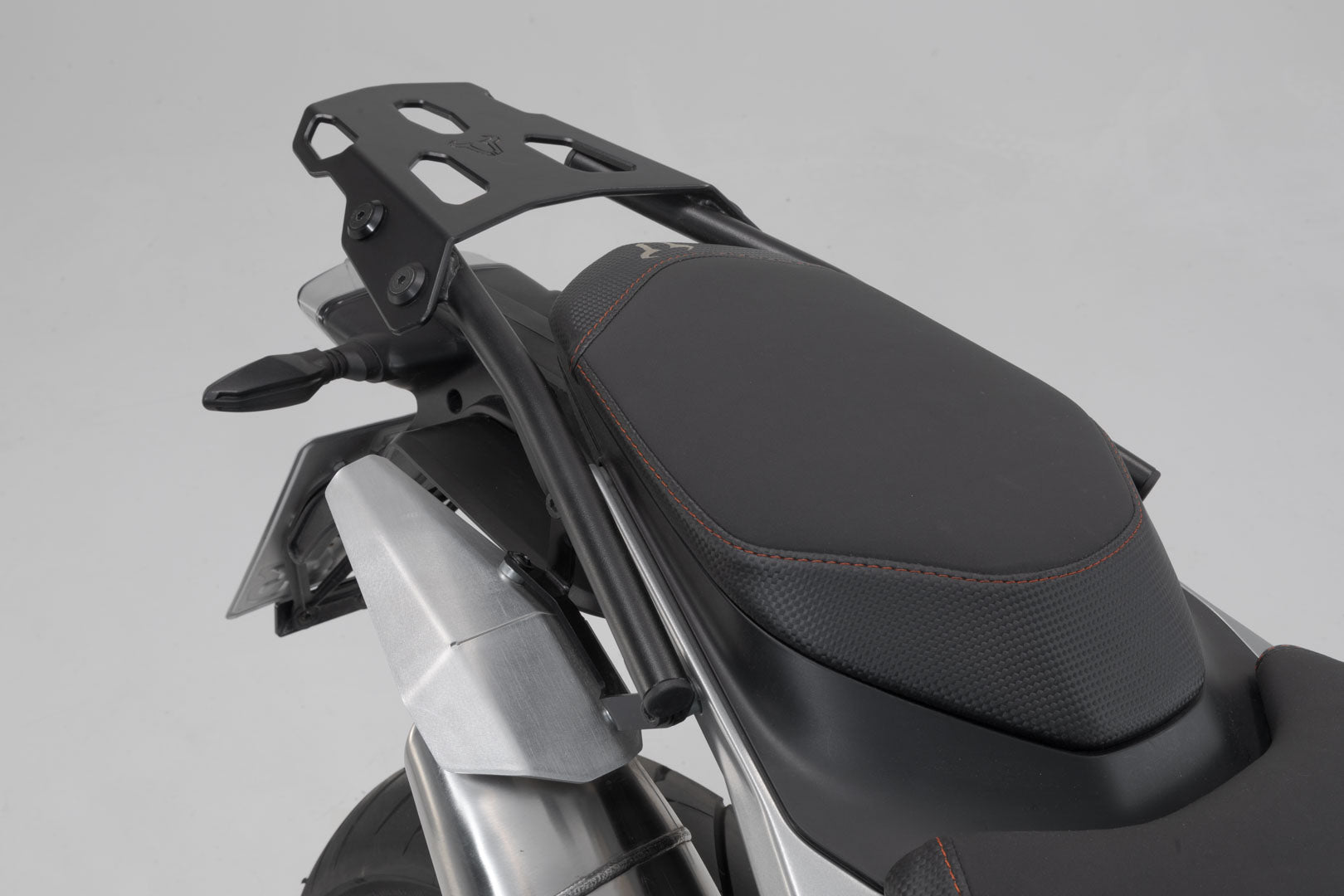 The compact STREET-RACK was developed specially for sporty motorcycles, naked bikes and smaller street bikes. The URBAN ABS top case or an adapter plate can be fixed to the rack in one step without any tools. The adapter plate provides a sturdy base for top cases from SW-MOTECH, Givi, Krauser and Shad or a Sysbag 15/30 with adapter plate. Together with the extension (sold separately) with extra large contact surface, the STREET-RACK is also suitable for strapped-on luggage. With our STREET-RACK, your bike is ready for the next long tour in a few simple steps.