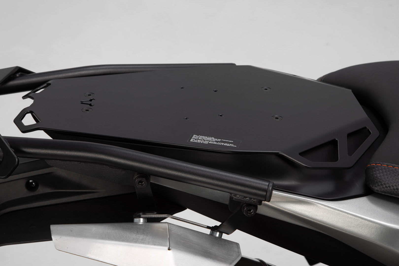 The passenger seat SEAT-RACK is the simplest way to attach luggage to sporty motorcycles or to create extra storage for travel enduro bikes. Placed on the original seat instead of the passenger seat, the SEAT-RACK can usually also be opened using the ignition key. Design and fit are perfectly coordinated to suit the vehicle's profile.