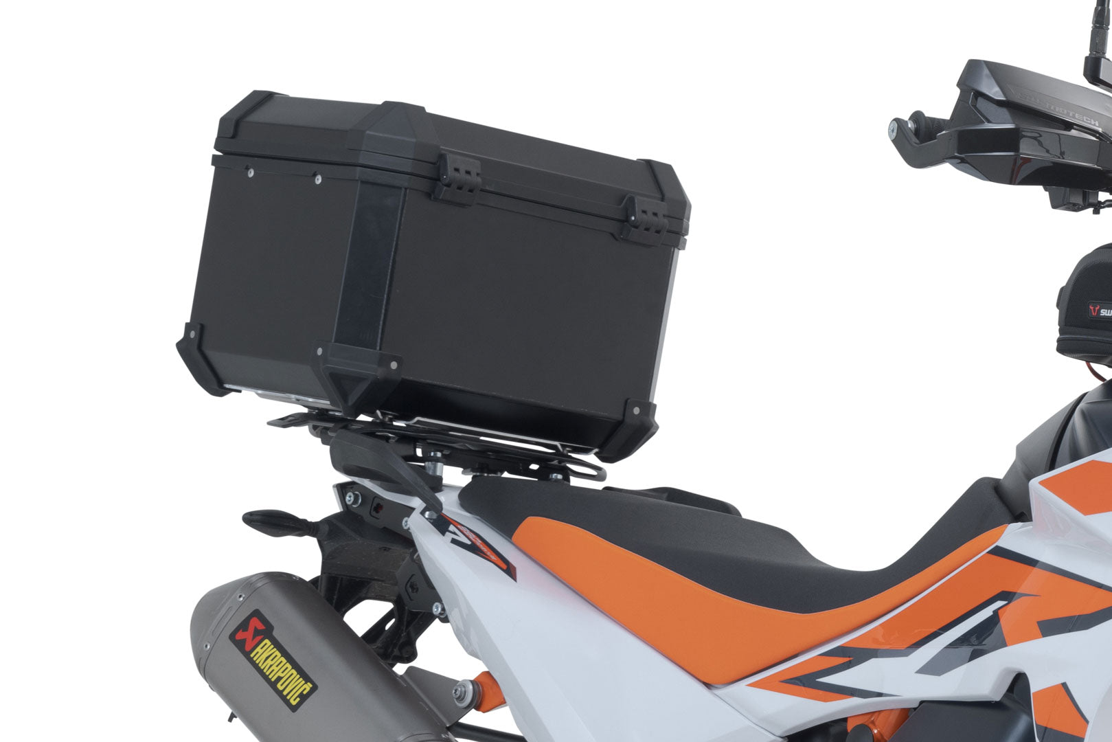 The TRAX ADV top case system consists of a robust top case in black with the matching ADVENTURE-RACK for the Husqvarna Norden 901 and various KTM models.