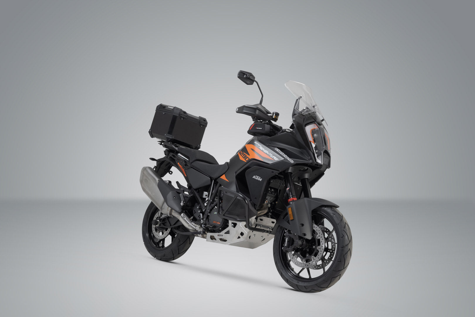 The TRAX ADV top case system consists of a sturdy black top case and matching ADVENTURE-RACK for the KTM 1290 Super Adventure.