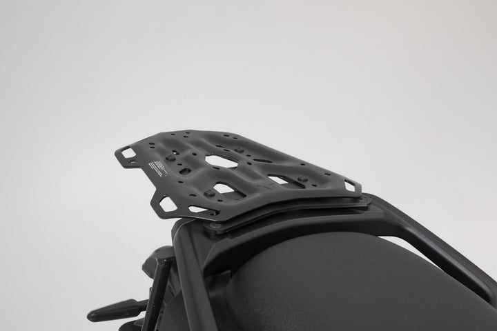 Ready for big adventure: Our ADVENTURE-RACK proves itself with its extreme durability and function-oriented shape. More than 15 years of experience producing racks, combined with feedback from customers and test riders, went into the development of this aluminum rack Material thickness, weight and geometry have been optimized for demanding tours and off-road use. The bike-specific attachments guarantee the best fit and easy mounting on original attachment points. Specifically developed for long-distance enduros, large street and sport touring machines, the ADVENTURE-RACK offers a large contact surface. Numerous, large lashing eyes provide secure hold for tail bags. The functional bores require adapter kits for attaching top cases by SW-MOTECH, Givi, Krauser and Shad or SysBags.