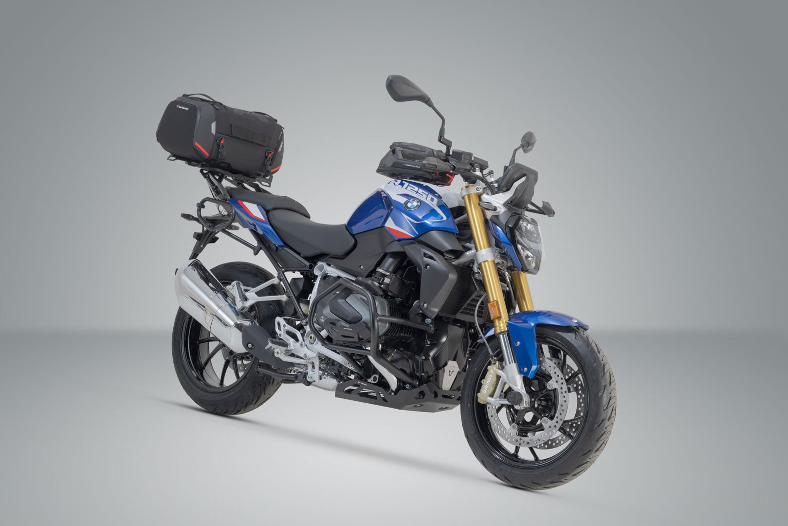 We have put together this tail bag and rack combination to fit the BMW R1200 R/RS and R1250 R/RS. The bike-specific STREET-RACK with extension provides an ideal large contact surface for the PRO RACKPACK tail bag.