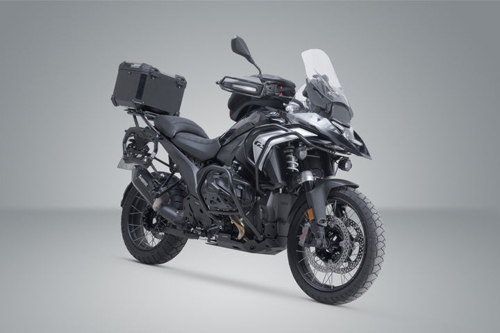 The TRAX ADV top case system consists of one rugged black top case and the matching ADVENTURE-RACK for the BMW R 1300 GS.