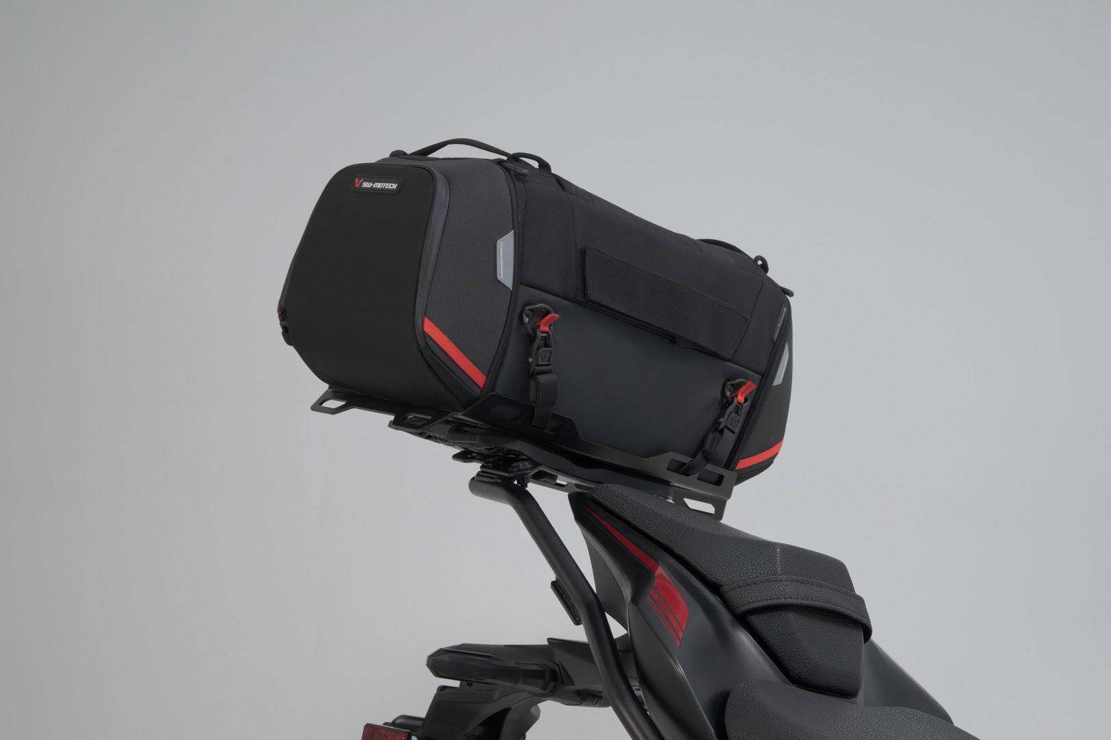 The tail bag from the PRO series is made by SW-MOTECH from indestructible 1680 D Ballistic Nylon and the rack from robust aluminum alloy. The rack is attached to resilient bike-specific mounting points on the motorcycle.