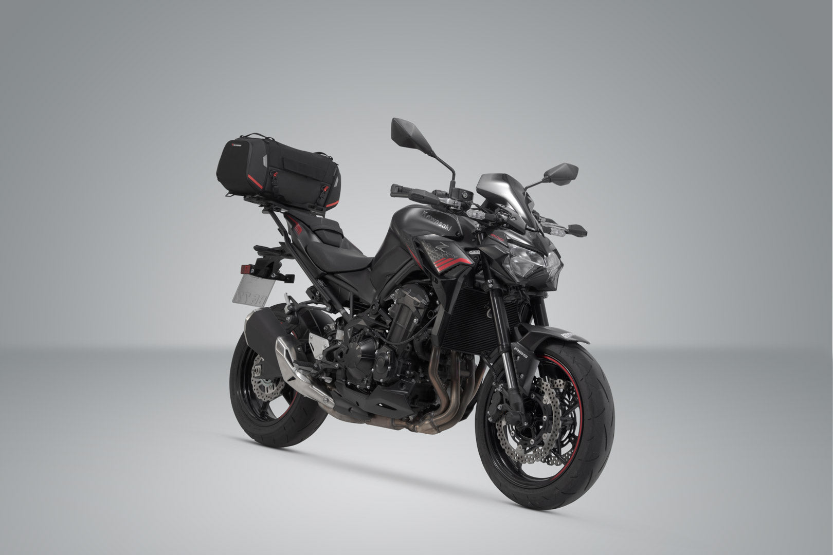 We've put together this combination of tail bag and rack to fit the Kawasaki Z900. The bike-specific STREET-RACK with extension provides an ideal large contact surface for the PRO RACKPACK tail bag.