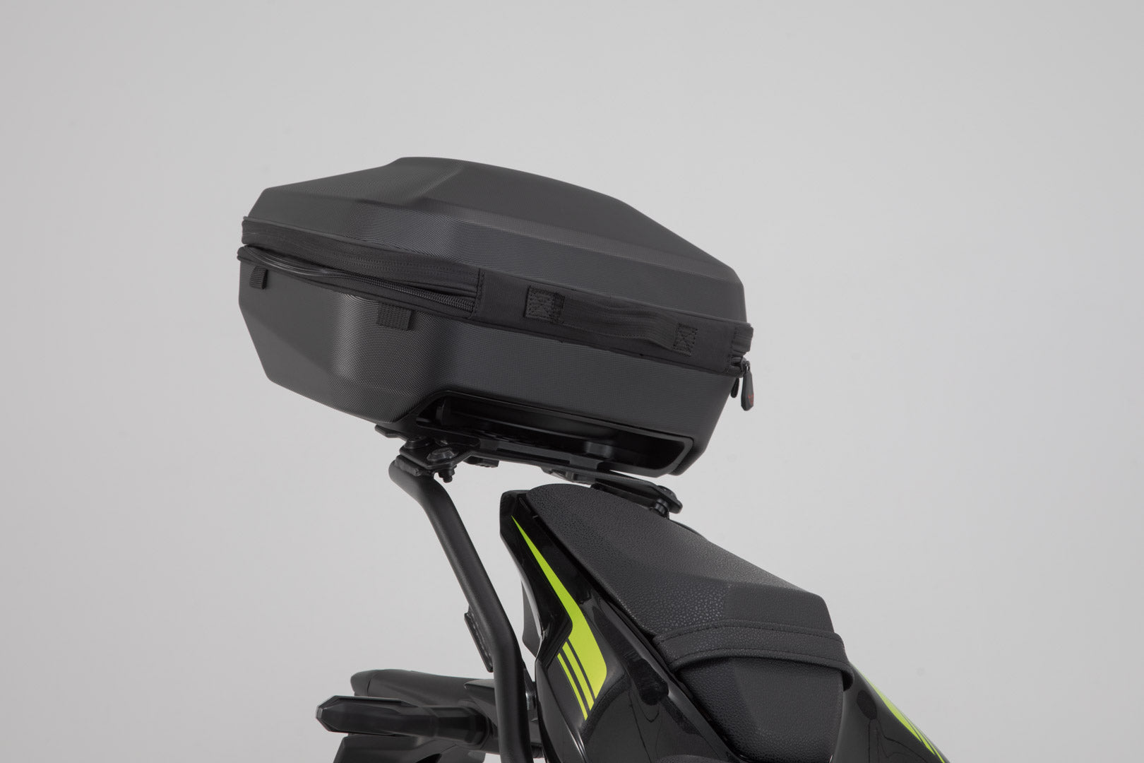 The perfect combination of top case and rack: The aerodynamic URBAN ABS top case and the sleek STREET-RACK offer a sporty solution for your luggage that is fit for everyday life at the same time.The sleek STREET-RACK, included in the set, was specifically developed for sporty motorcycles, naked bikes and smaller street bikes. SW-MOTECH finishes the STREET-RACK with powder coated aluminum and offers the right models for numerous bikes. You simply mount the rack on your bike's original attachment points.