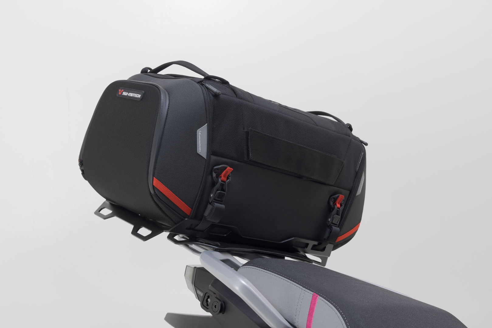 The tail bag from the PRO series is made by SW-MOTECH from indestructible 1680 D Ballistic Nylon and the rack from robust aluminum alloy. The rack is attached to resilient bike-specific mounting points on the motorcycle.
