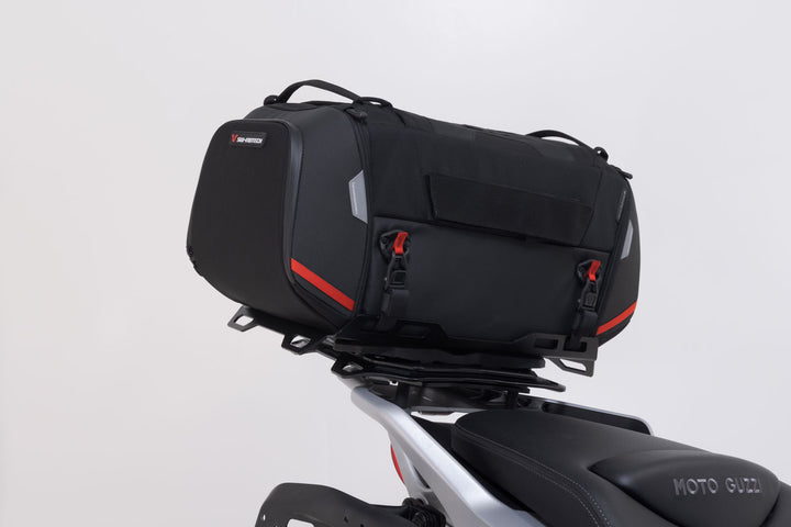 The tail bag from the PRO series is made by SW-MOTECH from indestructible 1680 D Ballistic Nylon and the rack from robust aluminum alloy. The rack is attached to resilient bike-specific mounting points on the motorcycle.