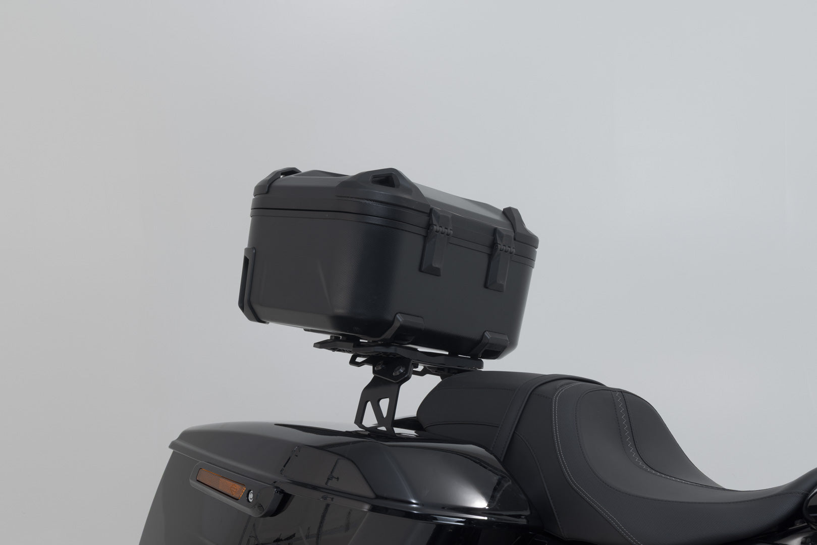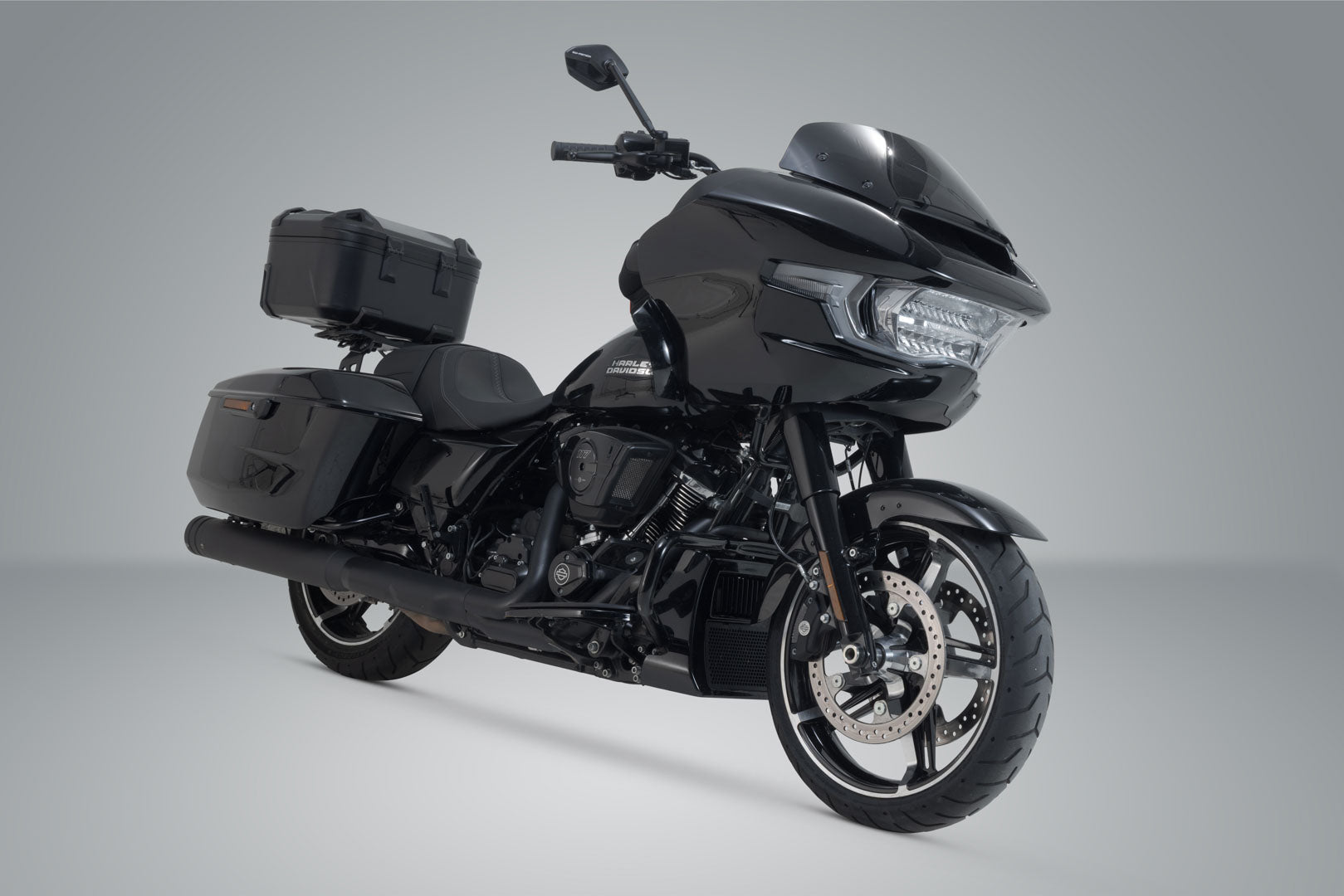 The DUSC top case system consists of the robust DUSC L hard case and the matching STREET-RACK for the Harley-Davidson Road Glide. An adapter kit and the DUSC lock set are also included in delivery.