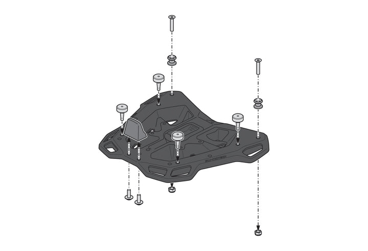- The adapter plate latch buckle is equipped with a safety mechanism that guarantees TRAX top cases, Sysbag 15/30 with adapter plate and PRO or EVO tank bags are securely in place