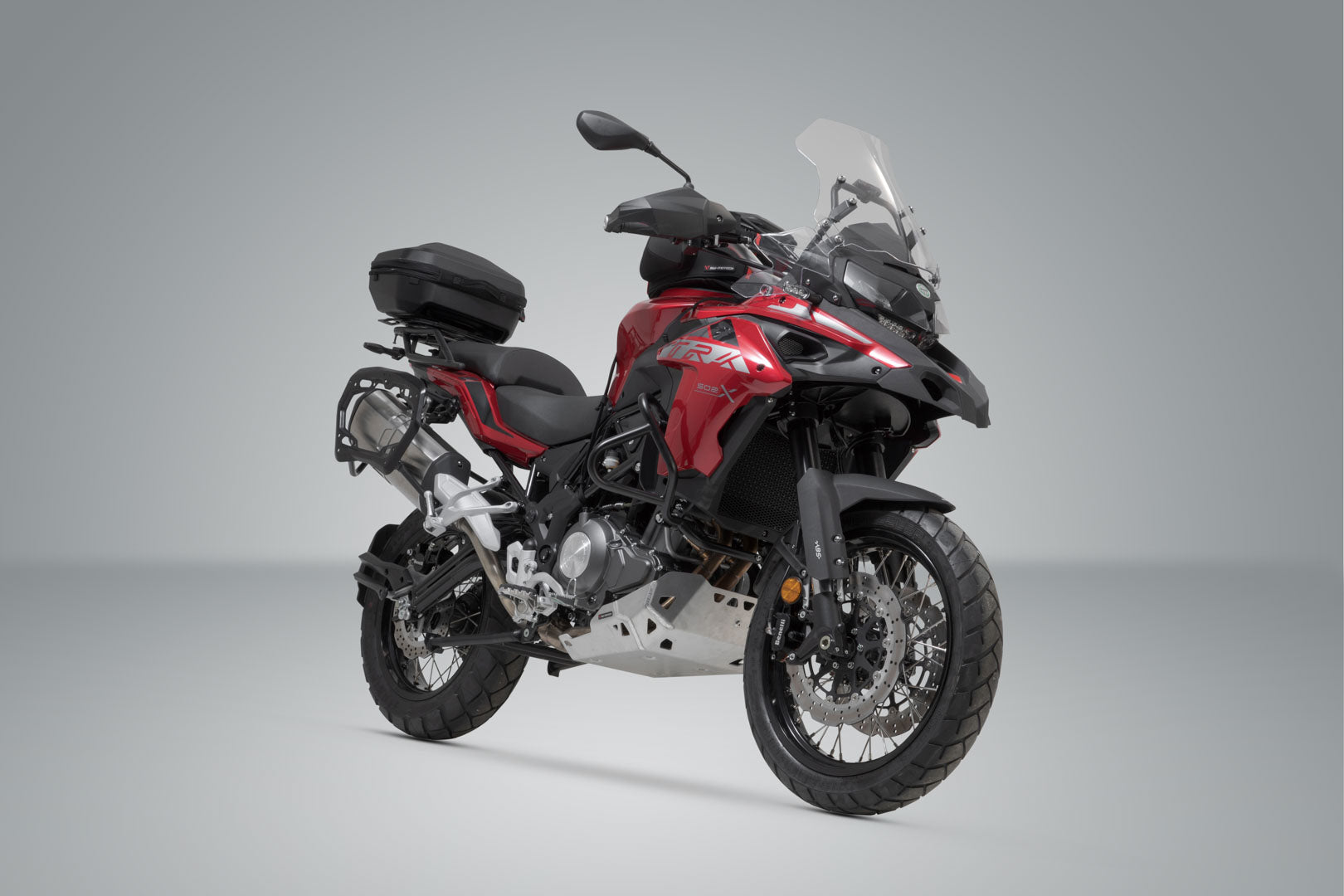 A sporty and lightweight top case for the Benelli TRK 502 X: with this set consisting of an URBAN ABS top case and ADVENTURE-RACK, SW-MOTECH offers a simultaneously elegant and sturdy solution for trips with little luggage.The ADVENTURE-RACK is included in the set. It is convincing with its extreme durability and function-oriented shape. More than 15 years of experience producing racks, combined with feedback from customers and test riders, went into the development of this aluminum rack Material thickness, weight and geometry have been optimized for demanding tours and off-road use.