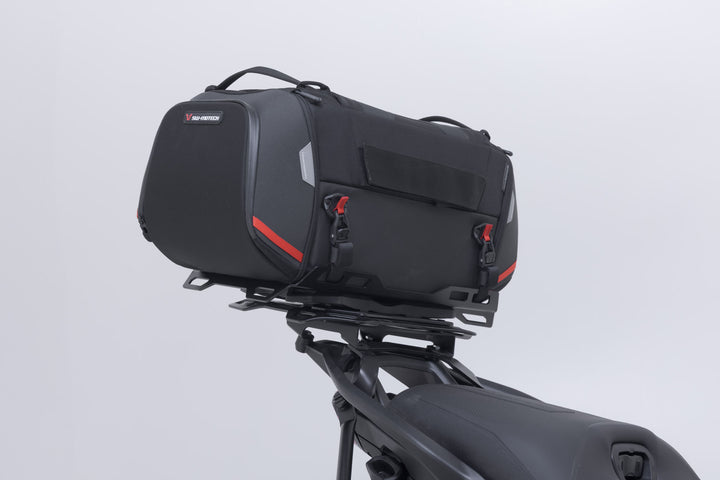 The tail bag from the PRO series is made by SW-MOTECH from indestructible 1680 D Ballistic Nylon and the rack from robust aluminum alloy. The rack is attached to resilient bike-specific mounting points on the motorcycle.