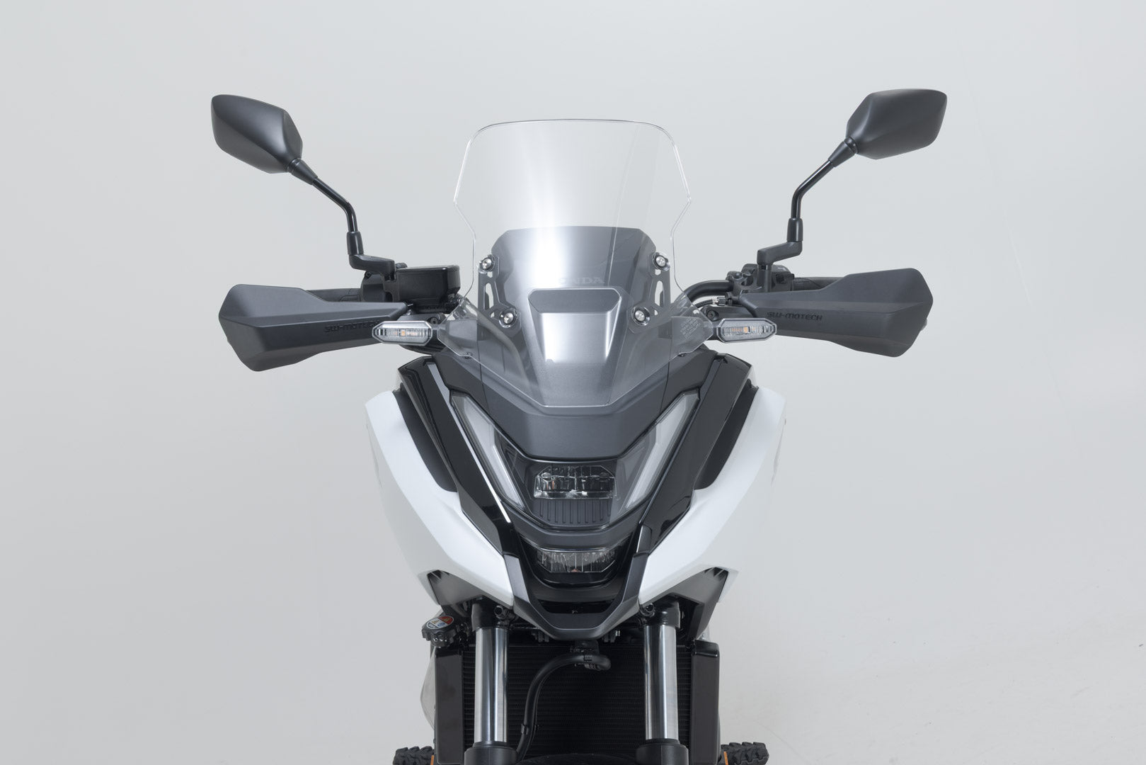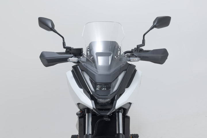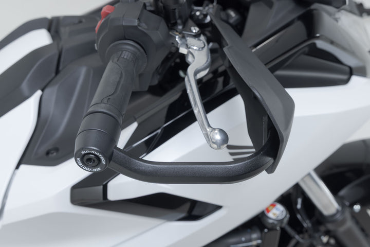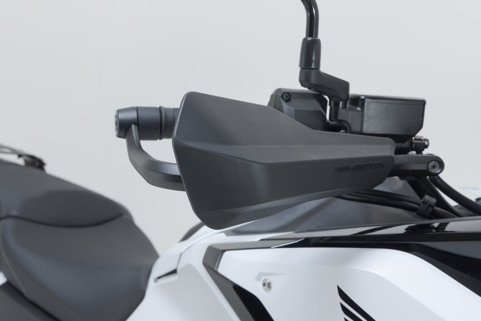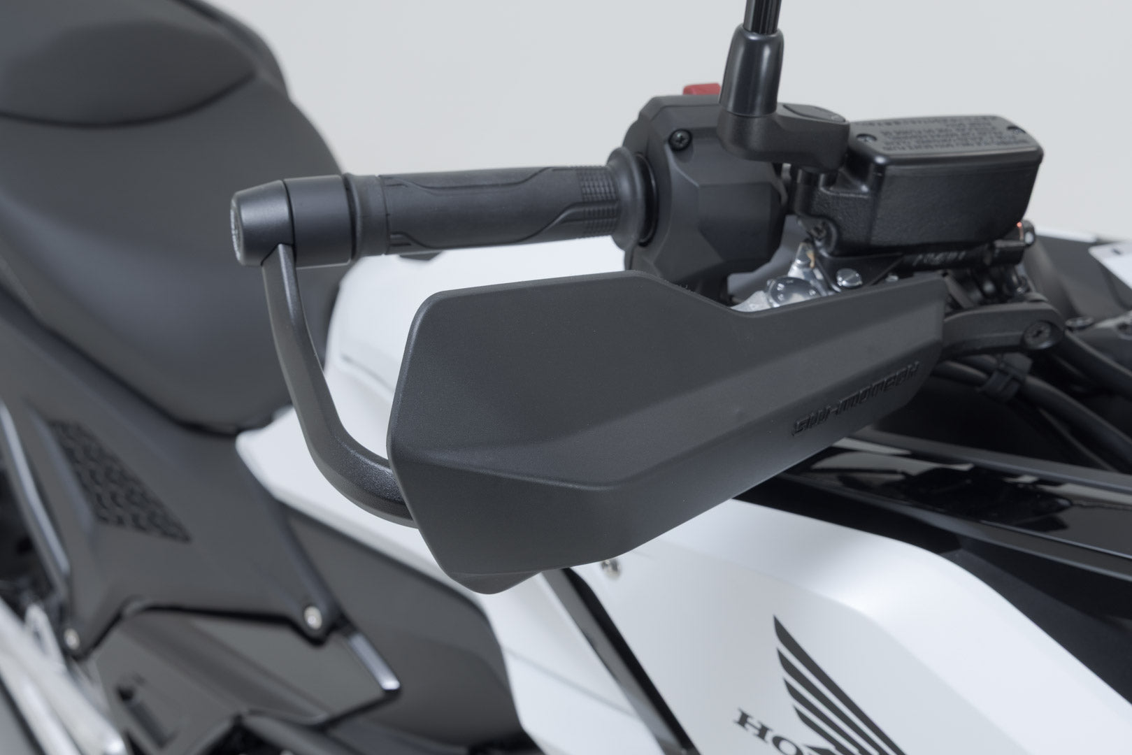 This handguard kit protects your bike's handlebar controls in the event of a fall and your hands from the elements, such as cold air and rain. The basis is a sturdy aluminum bracket to which the Sport handguard shells are attached. The shells' impact-resistant plastic is flexible and offers the excellent protection against external factors. Their slim shape and matt black look also provide a stylish design element on your handlebars. The separately available extension sets provide even more weather protection.