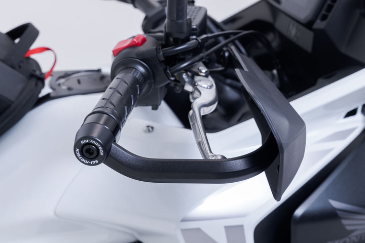 This handguard kit protects your bike's handlebar controls in the event of a fall and your hands from the elements such as cold air and rain. The basis is a sturdy aluminum bracket to which the sports handguard shells are attached. The impact-resistant plastic of the shells is flexible and offers the best protection from external influences. The slim shape and the matt black look also provide a stylish design element on the handlebar. The separately available extension sets provide even more weather protection.