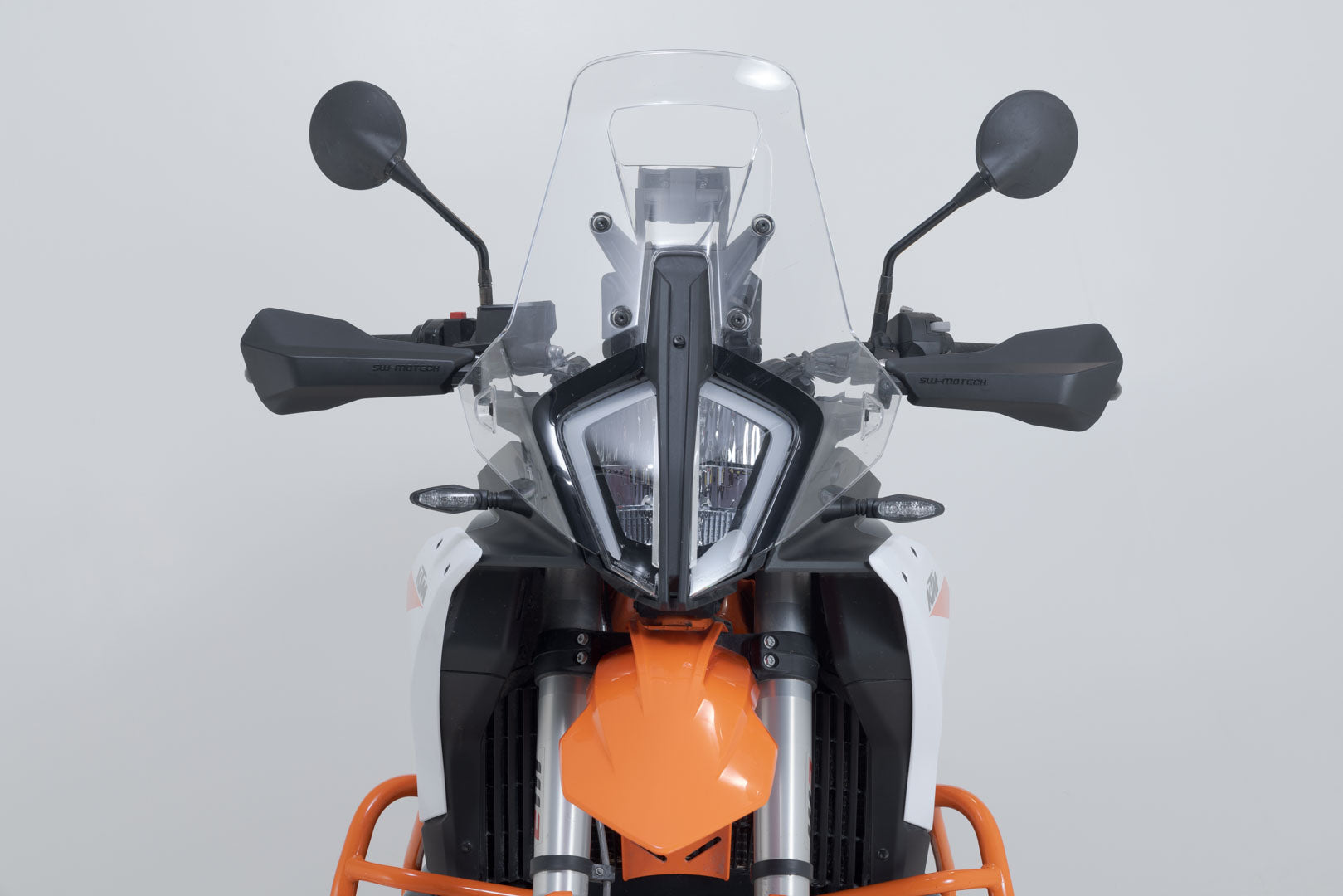This handguard kit protects your bike's handlebar controls in the event of a fall and your hands from the elements such as cold air and rain. The basis is a sturdy aluminum bracket to which the sports handguard shells are attached. The impact-resistant plastic of the shells is flexible and offers the best protection from external influences. The slim shape and the matt black look also provide a stylish design element on the handlebar. The separately available EXTENSION SETS provide even more weather protection.