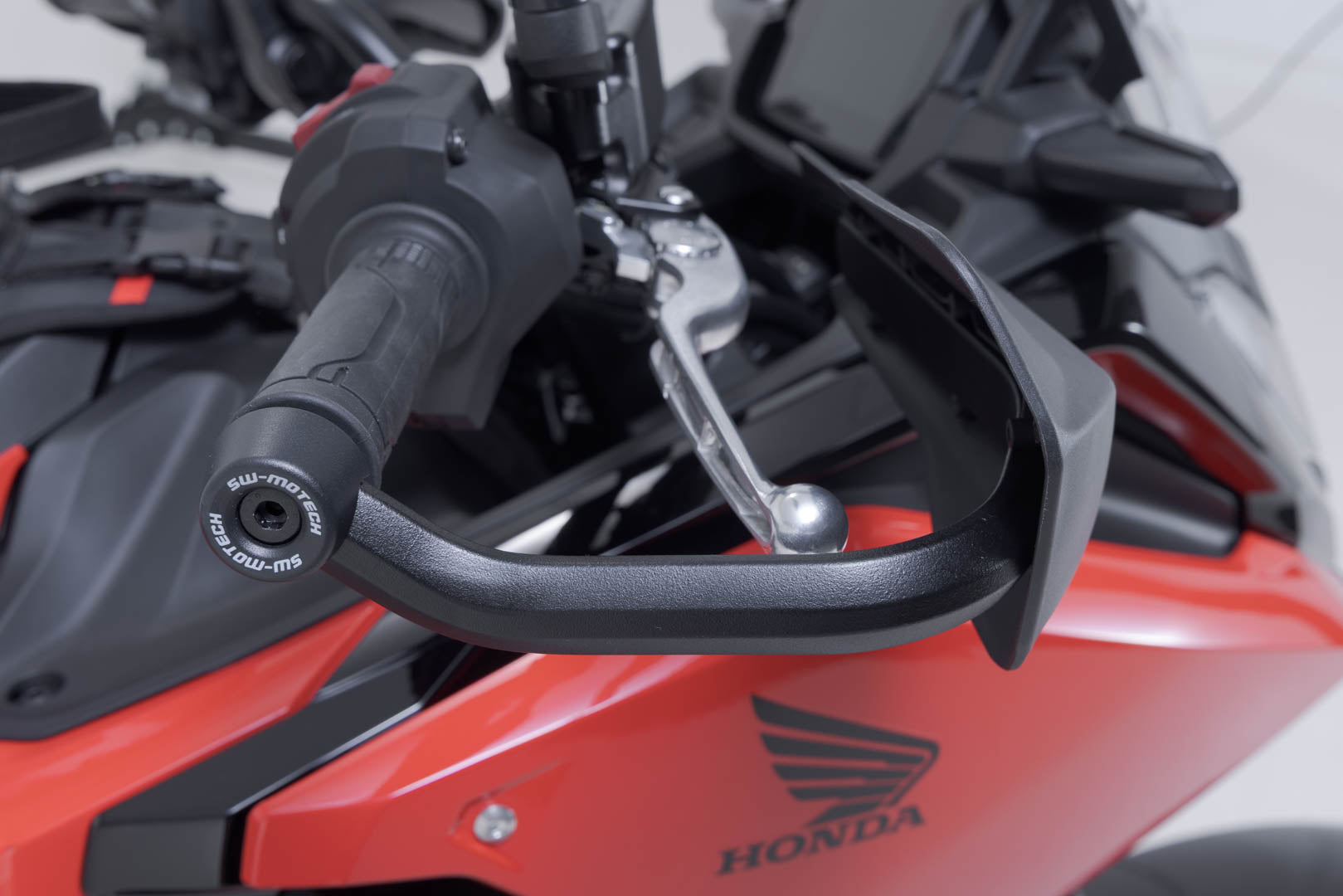 This handguard kit protects your bike's handlebar controls in the event of a fall and your hands from the elements such as cold air and rain. The basis is a sturdy aluminum bracket to which the sports handguard shells are attached. The impact-resistant plastic of the shells is flexible and offers the best protection from external influences. The slim shape and the matt black look also provide a stylish design element on the handlebar. The separately available extension sets provide even more weather protection.