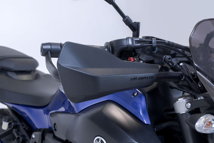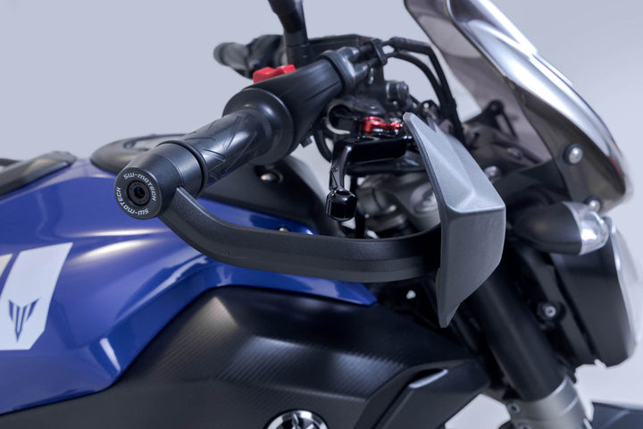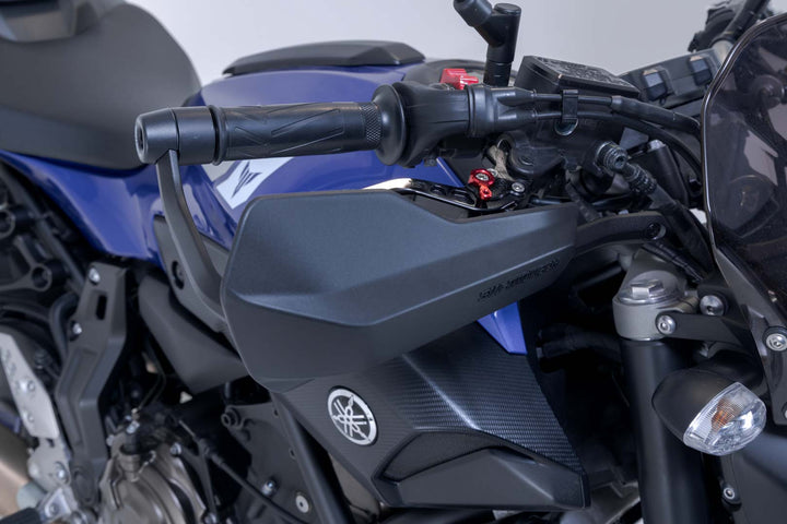 This handguard kit protects your bike's handlebar controls in the event of a fall and your hands from the elements such as cold air and rain. The basis is a sturdy aluminum bracket to which the sports handguard shells are attached. The impact-resistant plastic of the shells is flexible and offers the best protection from external influences. The slim shape and the matt black look also provide a stylish design element on the handlebar. The separately available extension sets provide even more weather protection.