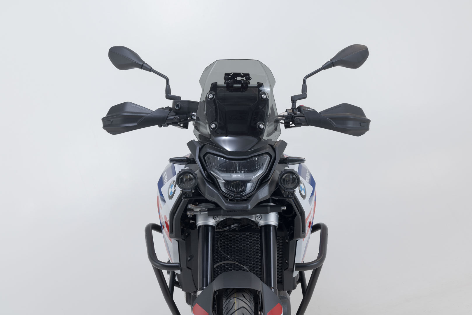 Whether on the road or off-road: The Adventure handguard kit protects the handlebar of your bike in the event of a fall and your hands from the elements as well as stone chips and branches. The basis is a sturdy aluminum bracket to which the Adventure handguard shells are attached. The impact-resistant plastic of the shells is flexible and offers the best protection from wind and weather; when driving off-road, your hands are protected from falling stones and contact with branches and bushes. The elegant shells with a matt black surface ensure a distinctive look on your bike. Thanks to the closed shape of the Adventure handguards, the handlebar and hands are also covered on the sides. For even more protection, the separately available crash pad set can be attached to the handguards. The extension set, which increases the protection area of ​​the Adventure handguards, provides more weather protection.