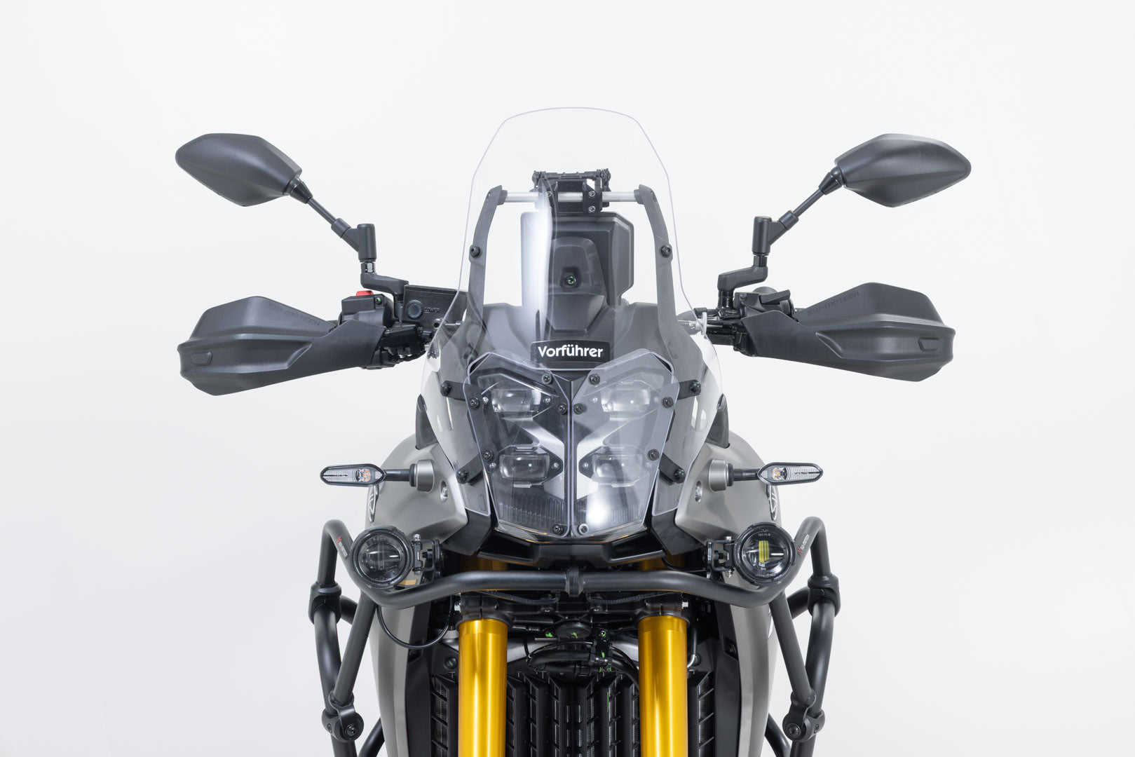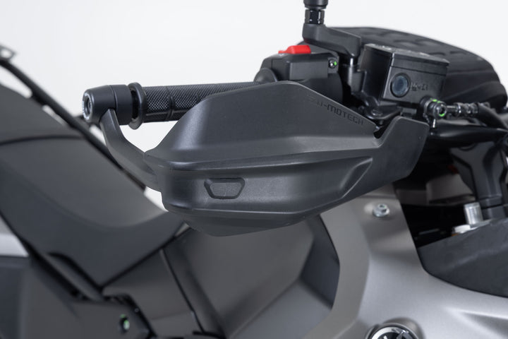 Whether on the road or off-road: The Adventure handguard kit protects the handlebar of your bike in the event of a fall and your hands from the elements as well as stone chips and branches. The basis is a sturdy aluminum bracket to which the Adventure handguard shells are attached. The impact-resistant plastic of the shells is flexible and offers the best protection from wind and weather; when driving off-road, your hands are protected from falling stones and contact with branches and bushes. The elegant shells with a matt black surface ensure a distinctive look on your bike. Thanks to the closed shape of the Adventure handguards, the handlebar and hands are also covered on the sides. For even more protection, the separately available crash pad set can be attached to the handguards. The extension set, which increases the protection area of the Adventure handguards, provides more weather protection.