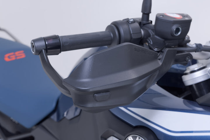 Whether on the road or off-road: The Adventure handguard kit protects the handlebar of your bike in the event of a fall and your hands from the elements as well as stone chips and branches. The basis is a sturdy aluminum bracket to which the Adventure handguard shells are attached. The impact-resistant plastic of the shells is flexible and offers the best protection against wind and weather. When driving off-road, your hands are protected from falling rocks and contact with branches and bushes. The elegant shells with a matt black surface ensure a distinctive look on your bike. Thanks to the closed shape of the Adventure handguards, the handlebar and hands are also covered on the sides. For even more protection, the separately available crash pad set can be attached to the handguards. The extension set, which increases the protection area of ??the Adventure handguards, provides more weather protection.
