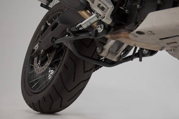 The indestructible, yet lightweight steel tube construction gives your Triumph Tiger 900 Rally/Pro the best angle and ground clearance, makes it easy to jack up and provides stability - whether it's during maintenance or on the road. In most cases, you will no longer need to buy an additional swing arm stand. During long downtimes in the winter months, the centerstand helps take the load off your tires.