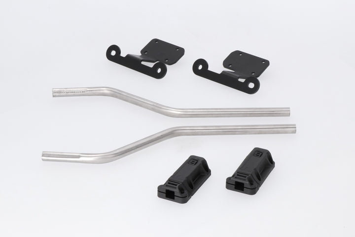 The bike-specific development of the removable support arms and a safety belt with click closure ensure the best grip and prevent transient oscillation or fluttering � even at high speeds. The inconspicuous holders for the removable support arms are also bike-specific. After initial mounting, they remain on the motorcycle. When it�s time for a big trip, the removable support arms are simply clicked in.