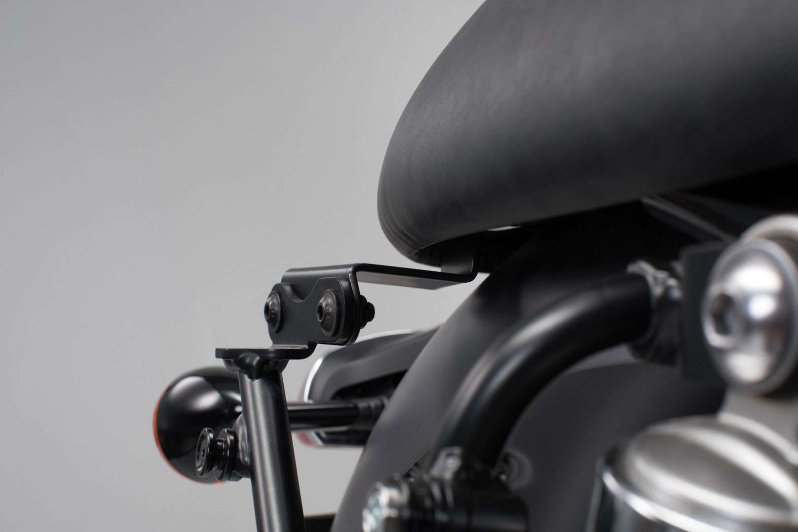 The adapter plate enables the use of the SLC side carrier without passenger grip bar. The bike-specific adapter plate allows easy and secure mounting on the original breakpoints on the bike and serves as a mounting socket for the SLC side carrier. The circumferential pillion rider grab rail is completely omitted.