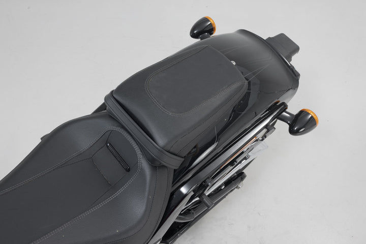 The bike-specific bag carrier can be easily and quickly mounted on to original attachment points on the fender strut. The quick lock system allows LH Legend Gear side bags to be attached and removed in just a few easy hand movements, without the driver foregoing reliable bag fastening.