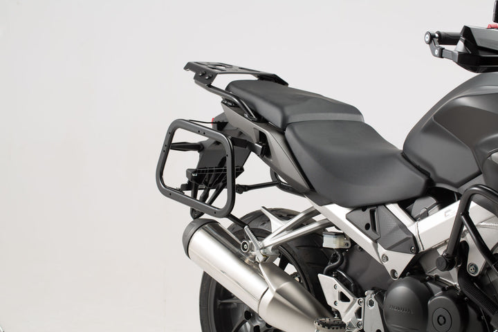 The side carriers are extremely durable and designed to fit closely along the vehicle. SW-MOTECH manufactures these side carriers in robust steel and then finish them off with a black powder coating. The patented QUICK-LOCK system allows the carrier to be attached and removed quickly - after a quarter turn at the attachment points, the carrier can be removed completely and only inconspicuous mounting tabs remain on the motorcycle.
