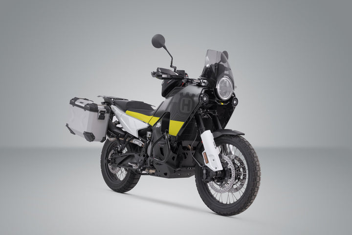 SW-MOTECH makes this silver aluminum case system suitable for the Husqvarna Norden 901, featuring extremely durable, bike-specific PRO side carriers.