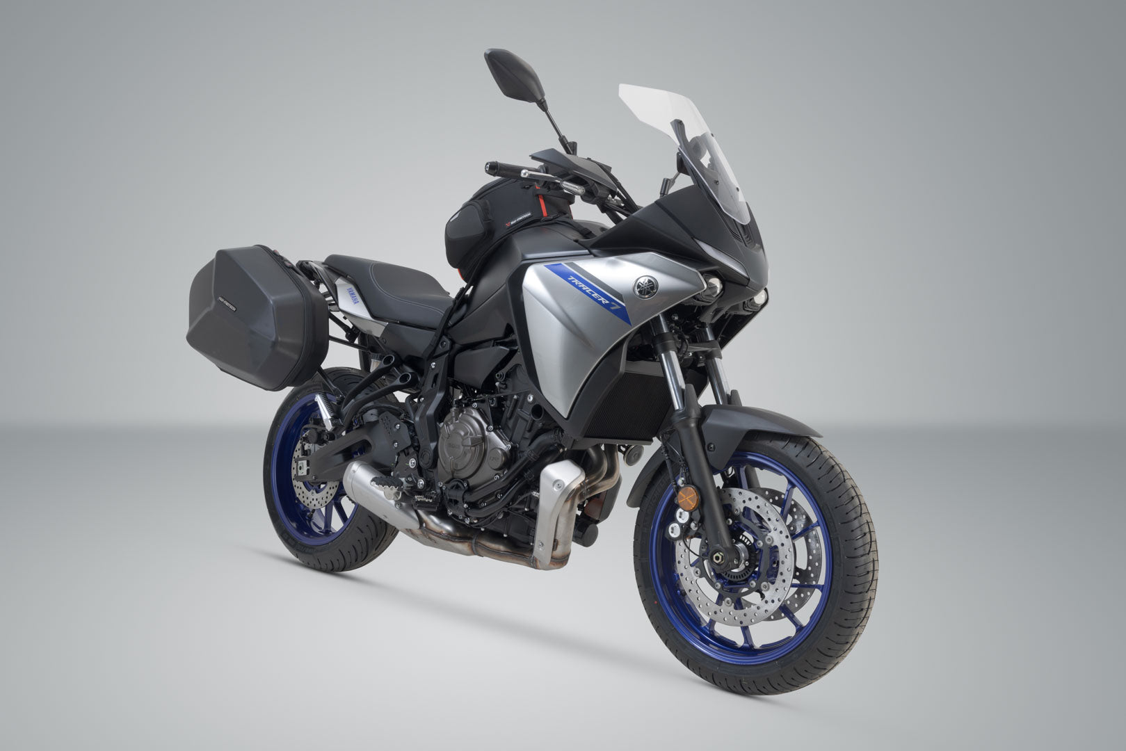The AERO ABS side case system consists of the matching PRO side carriers for the Yamaha MT-07 Tracer and two plastic cases.