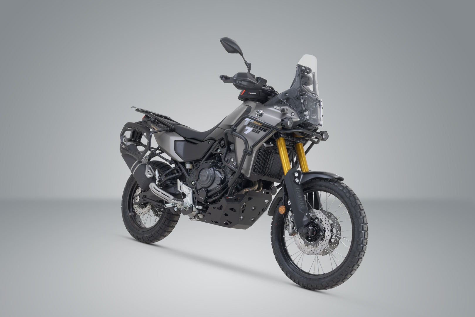 We have specially crafted these PRO side carriers to match the tail of the Yamaha Ténéré 700 and designed them to fit as close to the vehicle as possible. The width without the case is 570 mm.