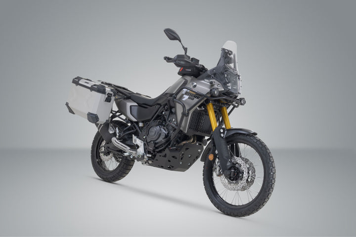 SW-MOTECH has built the silver aluminum case system suitable for the Yamaha Ténéré 700 with extremely durable, bike-specific PRO side carriers.