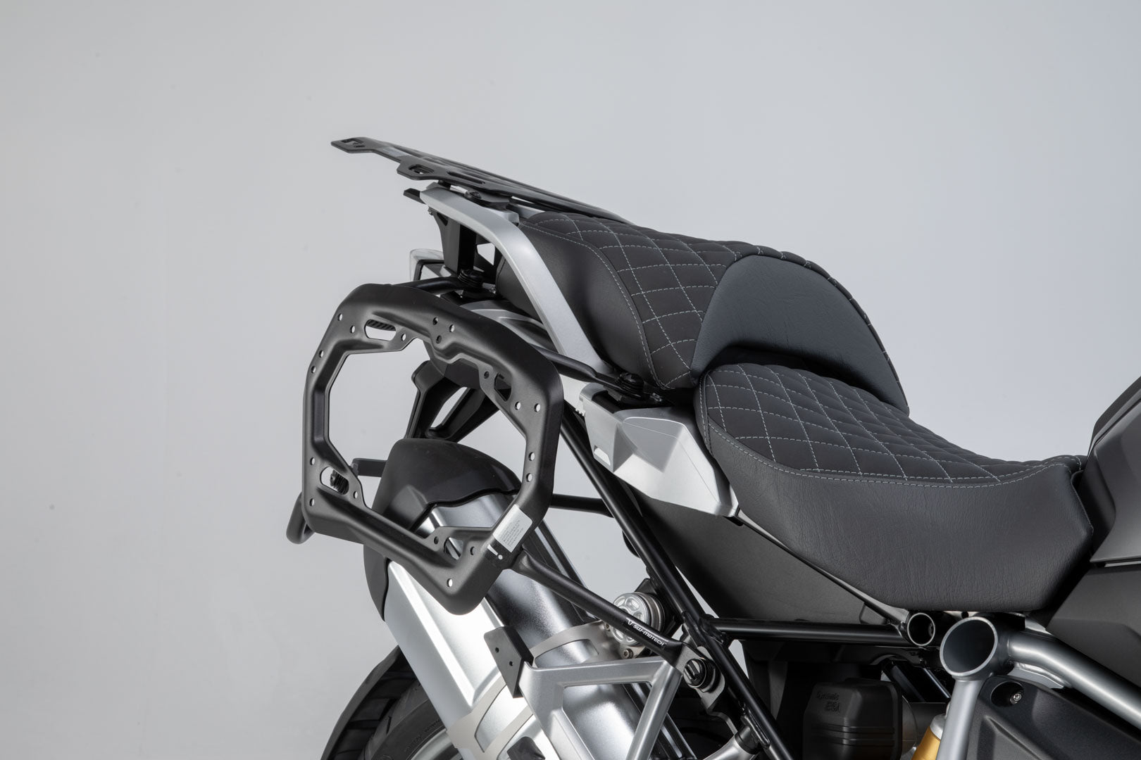 The side carriers are extremely durable and designed to fit closely along the vehicle. SW-MOTECH manufactures these side carriers in robust steel and then finish them off with a black powder coating. The patented QUICK-LOCK system allows the carrier to be attached and removed quickly - after a quarter turn at the attachment points, the carrier can be removed completely and only inconspicuous mounting tabs remain on the motorcycle.